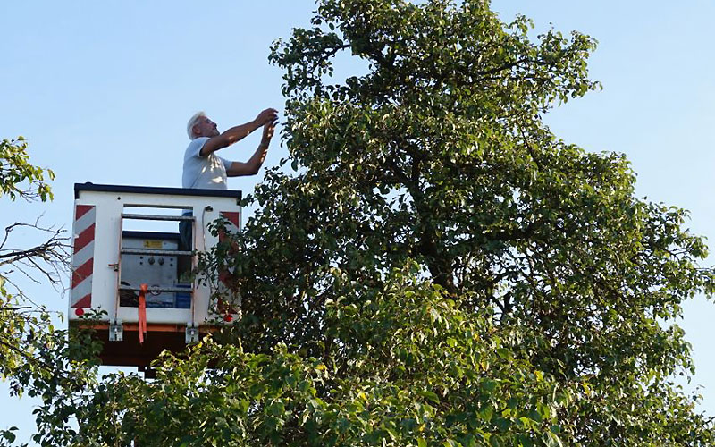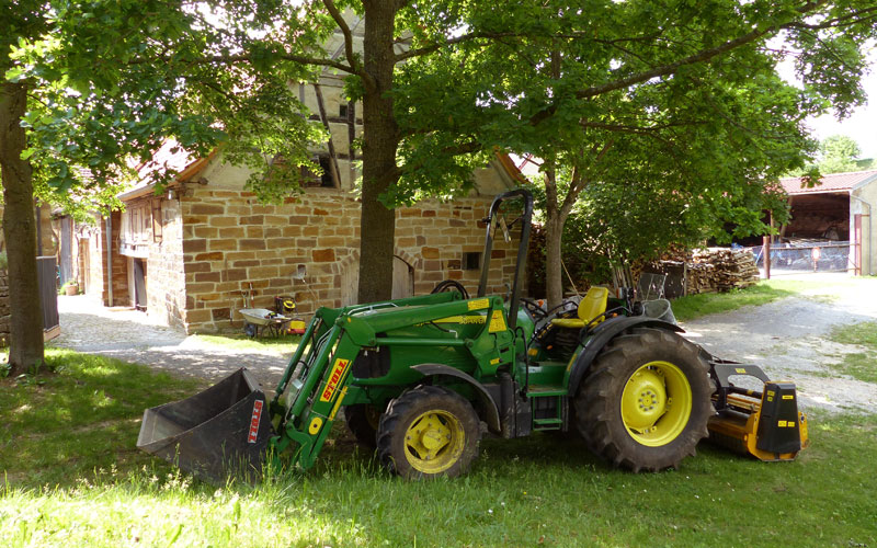 2008 folgte der Plantagentraktor zum Pflegen und Ernten, 2012 wurde ein Hubsteiger erworben, der seither das Abernten alter, sehr hoher Obstbäume, v.a. Wildkirschen und Birnen, erleichtert beziehungsweise erst ermöglicht.